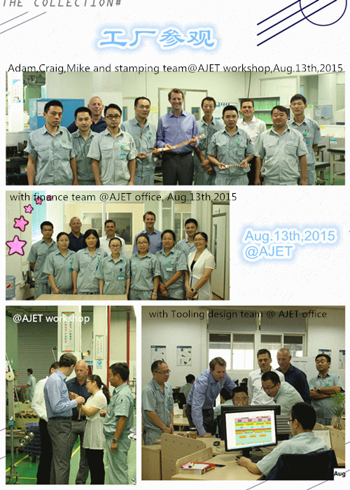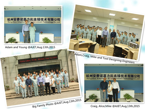 2015年8月12日晚Amphenol CEO Adam Norwitt, CFO Craig Lampo, FC Mike Ivas 一行抵达杭州,在AJET 特色农庄与AJET团队一起品尝农家菜;第二天8月13日上午在总经理杨总,财务总监梁总的陪同下一起参观AJET工厂。